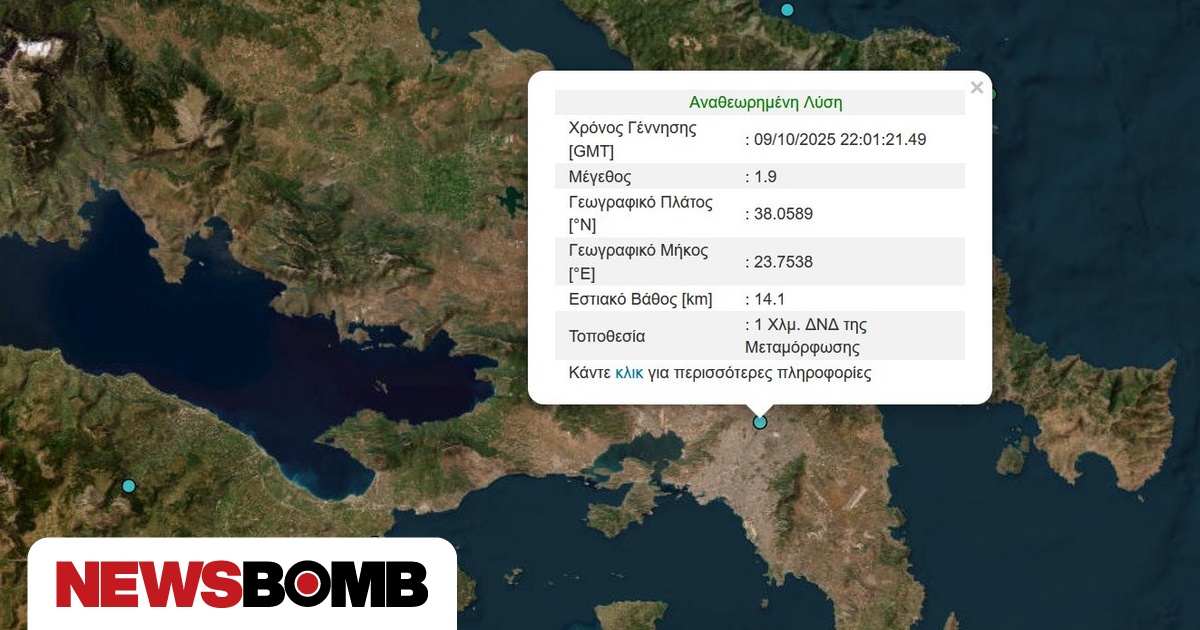 Σύμφωνα με την αναθεωρημένη λύση του Γεωδυναμικού Ινστιτούτου Αθηνών, το επίκεντρο του σεισμού εντοπίστηκε στα 12 χιλιόμετρα...