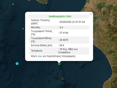 Σύμφωνα με το Γεωδυναμικό Ινστιτούτο, το επίκεντρο του σεισμού εντοπίζεται 19 Χλμ. ΒΒΔ των Στροφάδων ενώ το εστιακό βάθος υπολογίζεται...