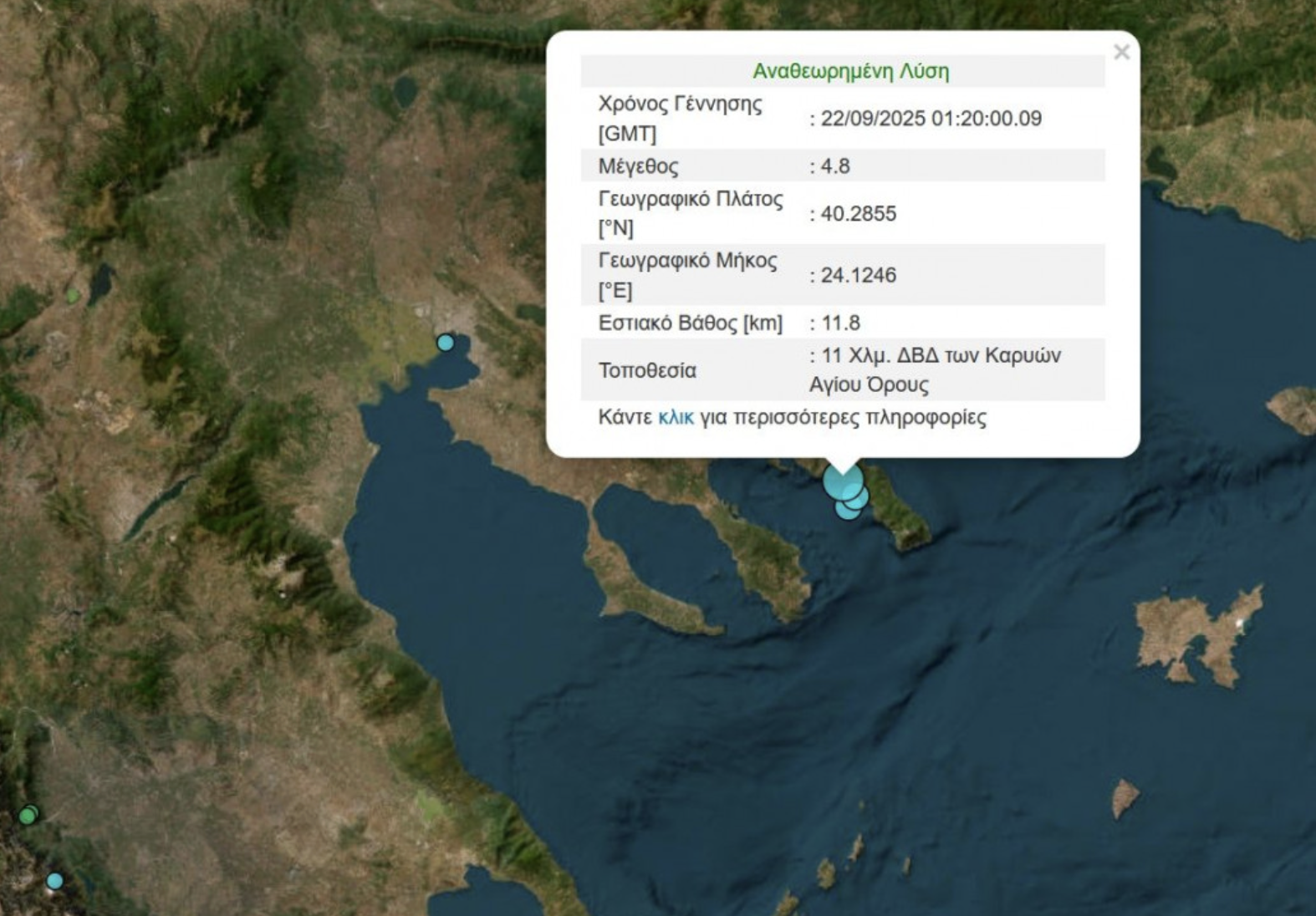 Σεισμός σημειώθηκε στη Χαλκιδικής, με το επίκεντρό του να εντοπίζεται στην περιοχή της Κασσάνδρας.