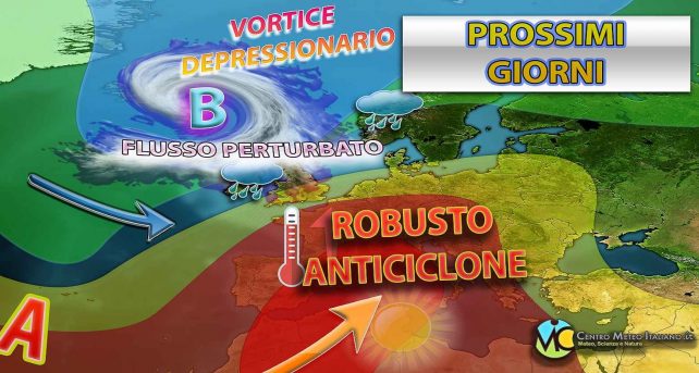 226. Meteo - Correnti atlantiche scaveranno il fianco dell'Anticiclone africano, con caldo in attenuazione nel Weekend e possibili temporali: ecco i dettagli